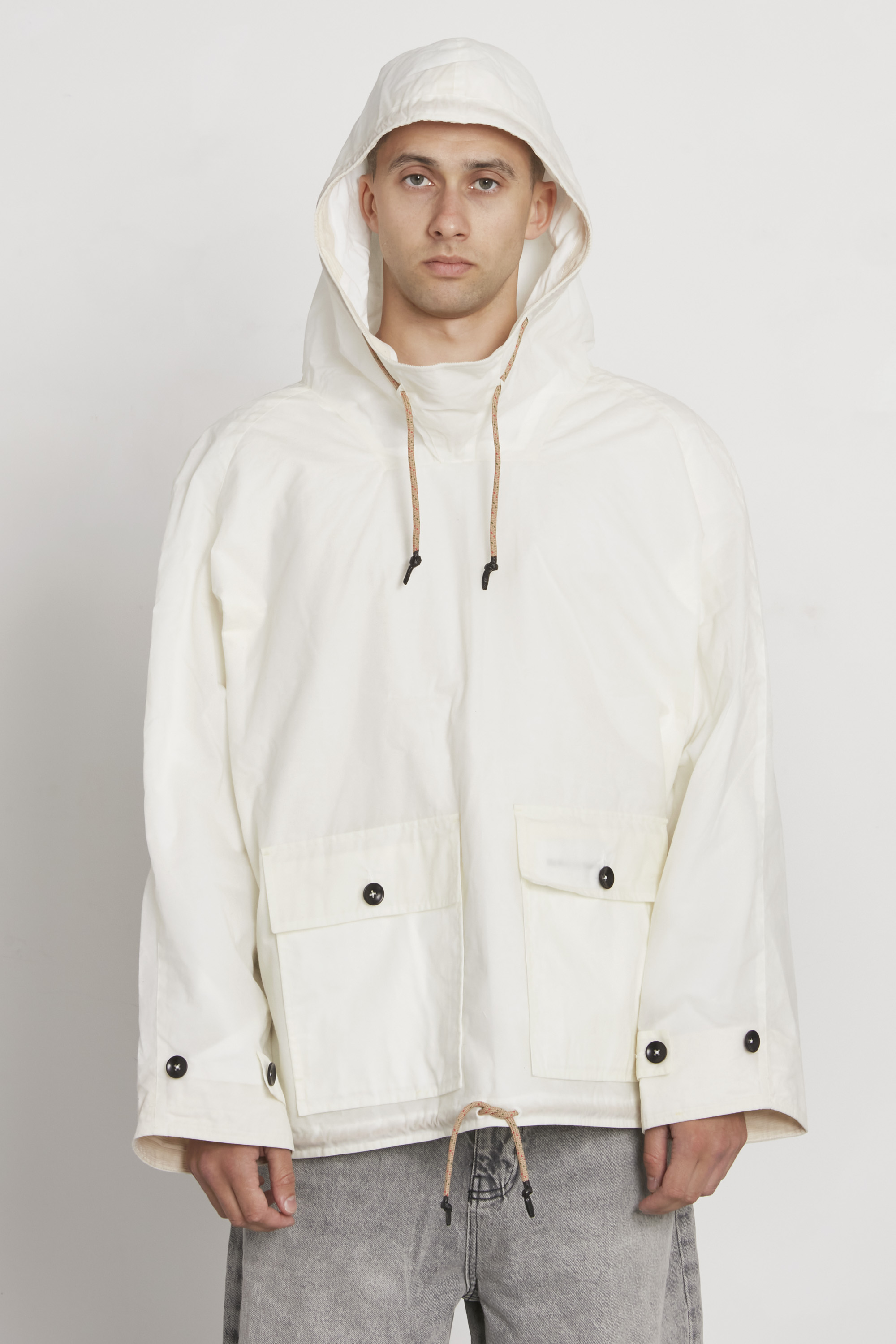 The outer fabric is a contemporary version of traditional waterproof cotton which develops a unique patina over time, moulding itself to its wearer. The C4X blend wax formula is soft to the touch while providing excellent weather performance and durability. We recommend reproofing the anorak occasionally.