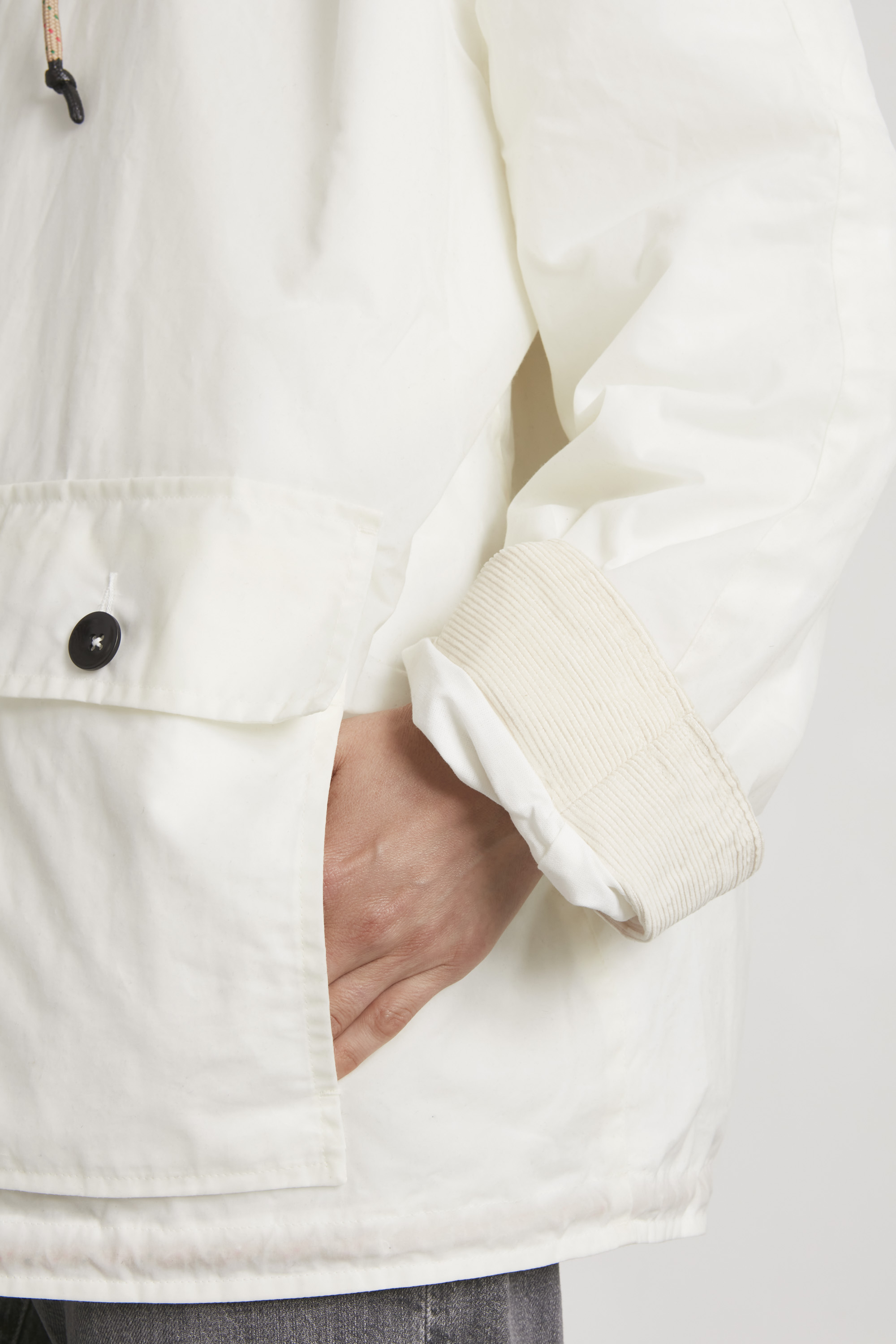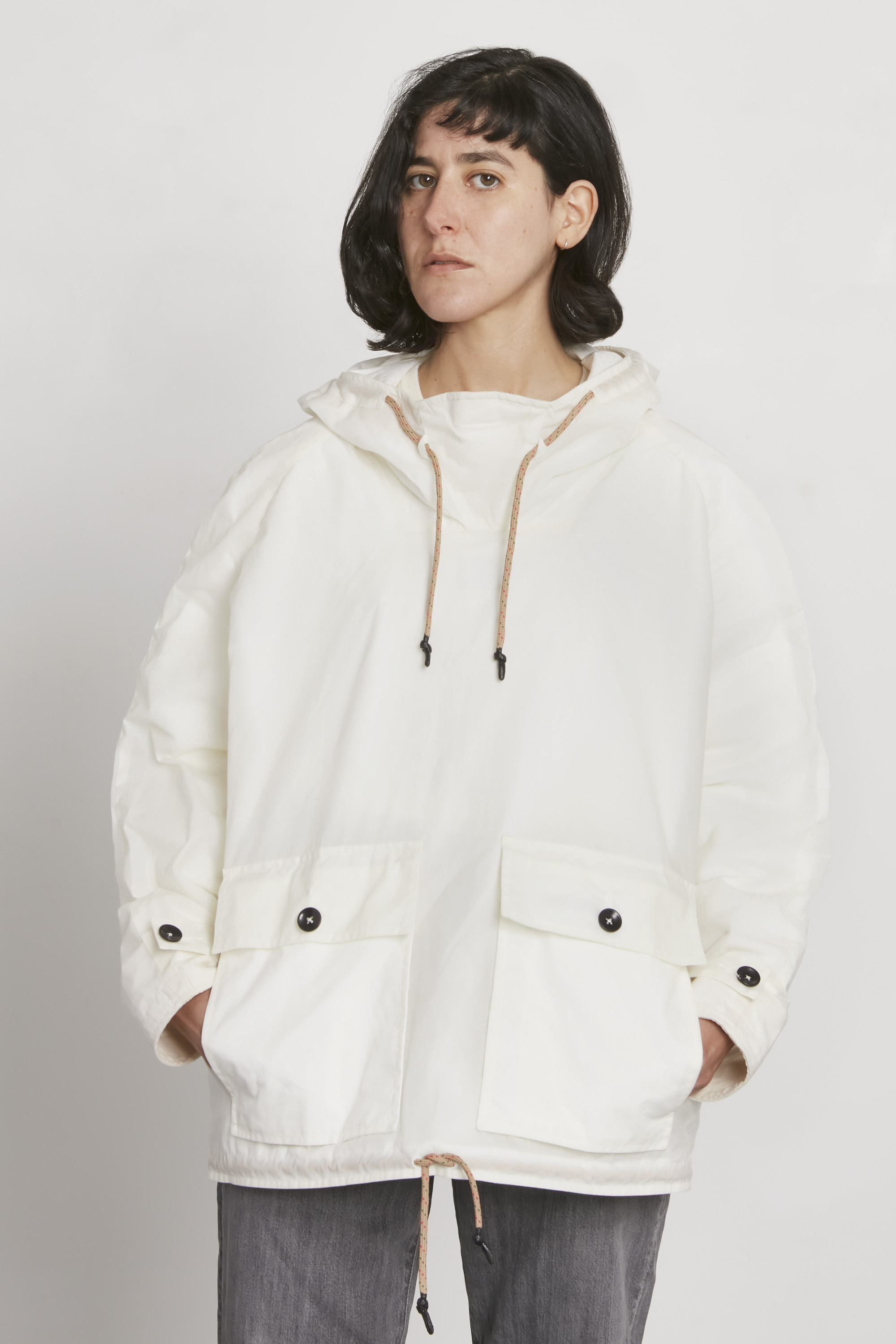With its boxy cut and wide sleeves the Anorak is designed with layering in mind. While the the raglan construction will let the sleeves fall longer on slimmer silhouettes, the corduroy inside of the cuffs lend themselves to be folded over.